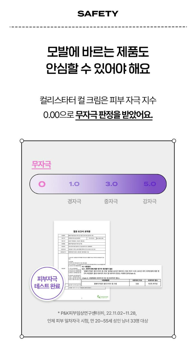 또한 컬리스타터 컬 크림은 피부 자극 지수 0.00으로 무자극 판정을 받았어요.