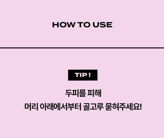 두피를 피해 머리 아래에서부터 골고루 묻혀주세요.