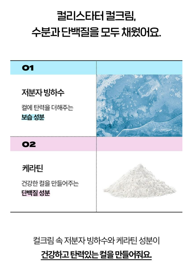 컬리스타트 컬크림은 수분, 단백질까지 채워 건강한 컬을 만들어줘요.