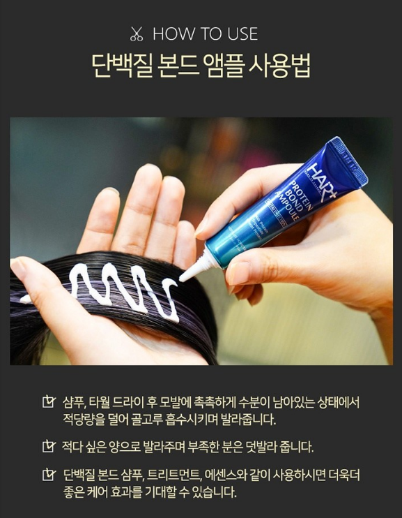 헤어플러스 단백질 본드 샴푸, 트리트먼트, 에센스와 같이 사용하시면 더욱더 좋은 케어 효과를 기대할 수 있어요.