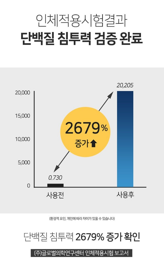 인체적용시험결과 단백질 침투력이 2679% 증가했음을 확인했어요.