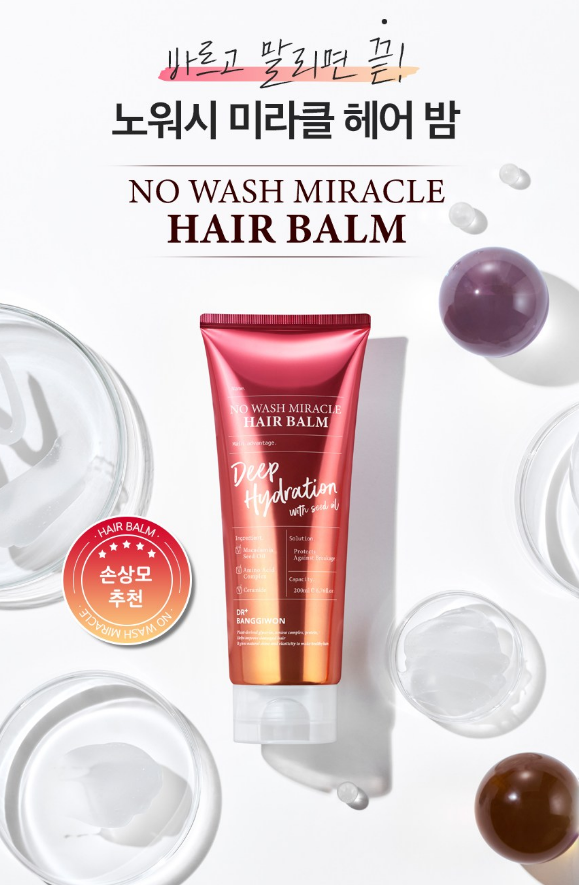 닥터방기원 노워시 미라클 헤어 밤은 노워시, 모발 윤기, 열손상으로부터 모발 보호가 가장 큰 특징이에요.