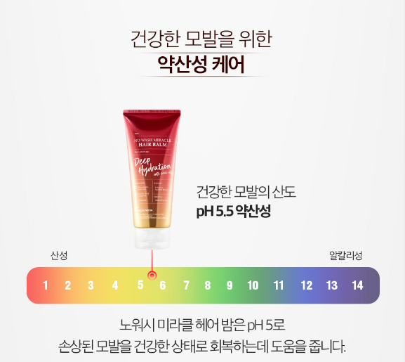 노워시 미라클 헤어 밤은 pH5로 손상된 모발을 건강한 상태로 회복하는데 도움을 줘요.