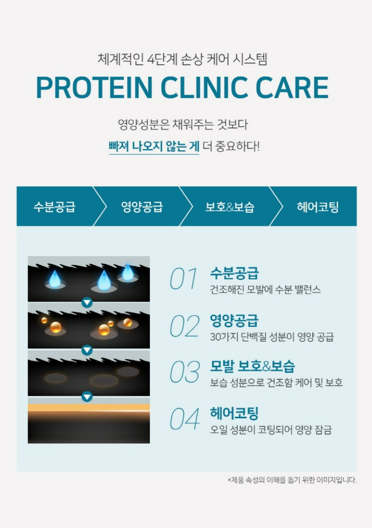 수분 공급, 영양 공급, 모발 보호 및 보습, 헤어 코팅 순으로 꼼꼼한 4단계 손상 케어가 가능해요.