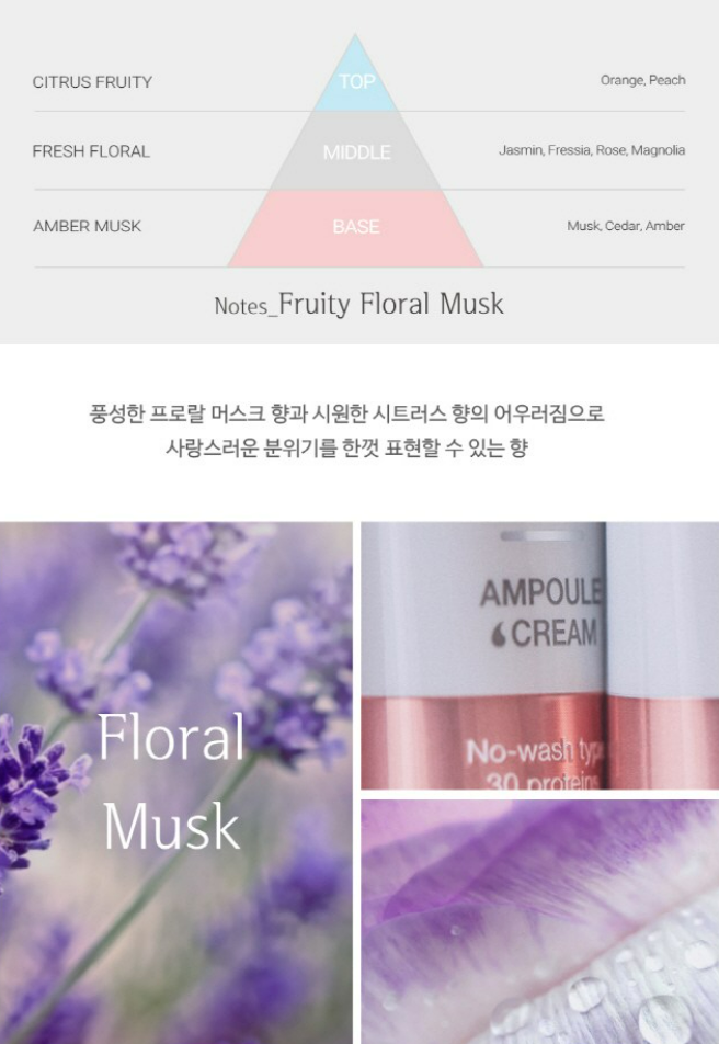 풍성한 플로럴 머스크 향과 시원한 시트러스 향의 어우러짐으로 사랑스러운 분위기를 한껏 표출할 수 있어요.