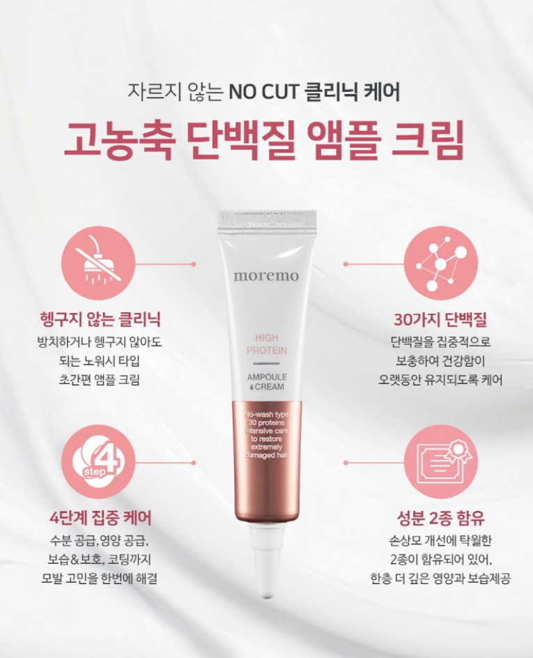 손상된 헤어 복구에 효과적인 모레모 고농축 단백질 헤어 앰플 크림!