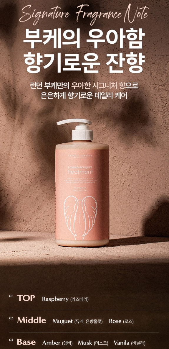 라즈베리 탑코트와 앰버, 머스크, 바닐라를 베이스로 한 런던 부케만의 우아한 시그니처 향을 가지고 있어요. 은은하게 향기로운 향으로 데일리 케어에도 적합해요.