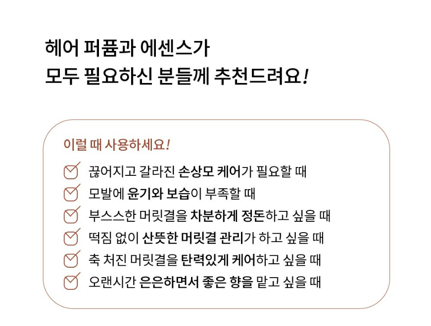 퍼퓸 헤어 에센스 찾고 계신가요? 요즘 향 좋은 헤어 에센스 제품 정말 많은데요. 아무래도 모발에 바르는 제품이다보니깐 저도 헤어 에센스의 기능 다음으로 향을 중요하게 생각하게 되더라구요.