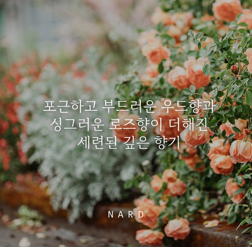 포근하고 부드러운 우드향과 싱그러운 로즈향이 더해진 세련된 깊은 향기를 가지고 있어요.