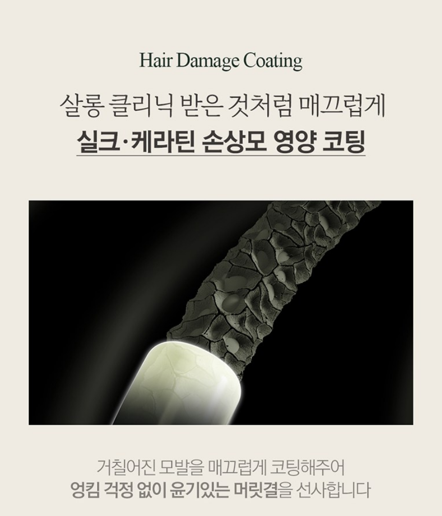 거칠어진 모발을 실크 및 케라틴 성분이 매끄럽게 코팅해주어 엉킴 걱정 없이 윤기있는 머릿결을 선사해줘요.