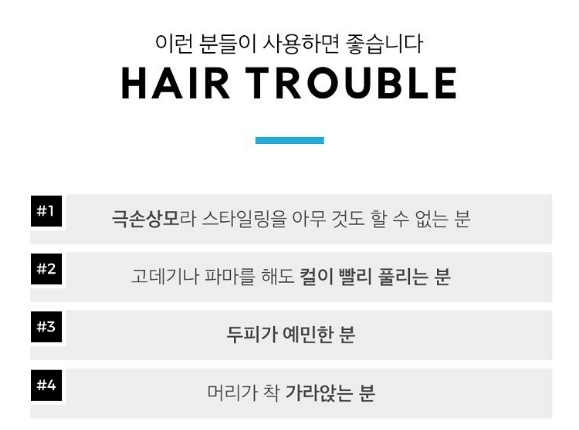 극손상모라 스타일링을 아무 것도 할 수 없는 분, 고데기나 파마를 해도 컬이 빨리 풀리는 분, 두피가 예민한 분, 머리가 착 가라 앉는 분들께 추천해요.