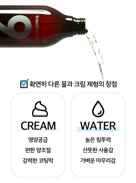 워터와 크림 제형 둘 다 갖춘 트리트룸 헤어 트리트먼트 손상모 복구에 정말 효과적이에요!