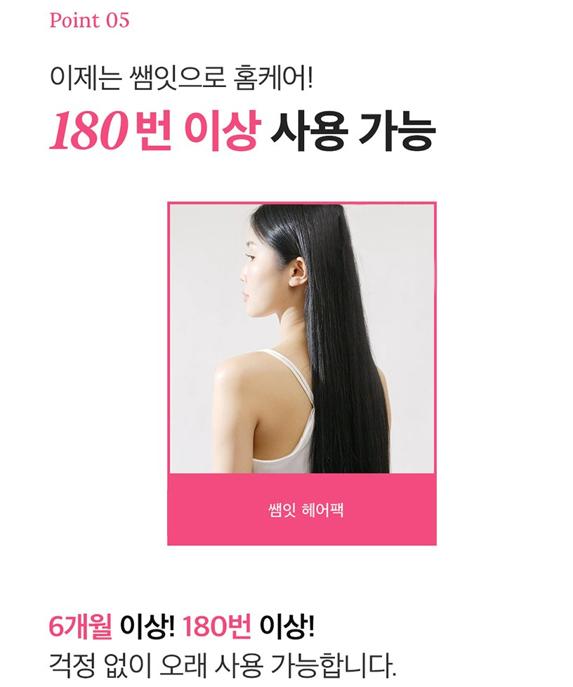 6개월 이상 180번 이상 걱정 없이 오랫동안 사용이 가능해요.