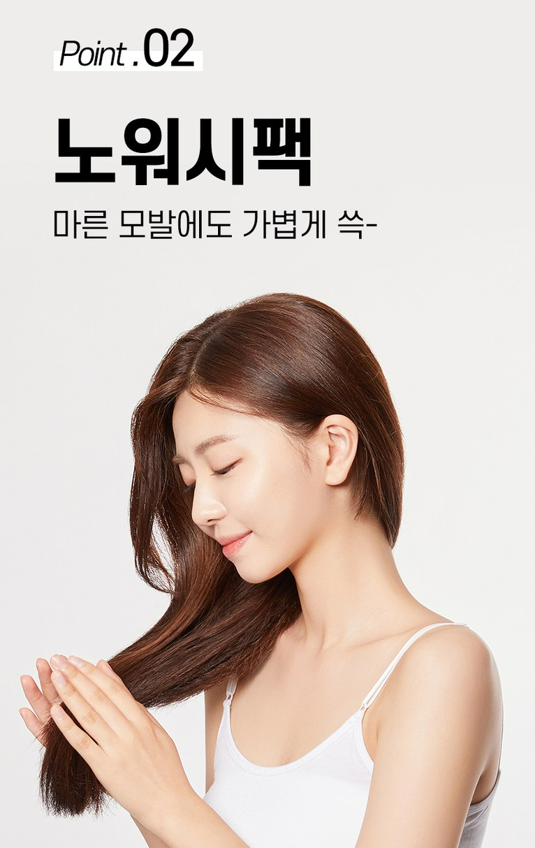 마른 모발에 사용할 경우 젖은 모발보다 흡수력이 살짝 느릴 수 있어요. 그래서 충분한 시간을 두고 모발에 흡수시켜 주세요.