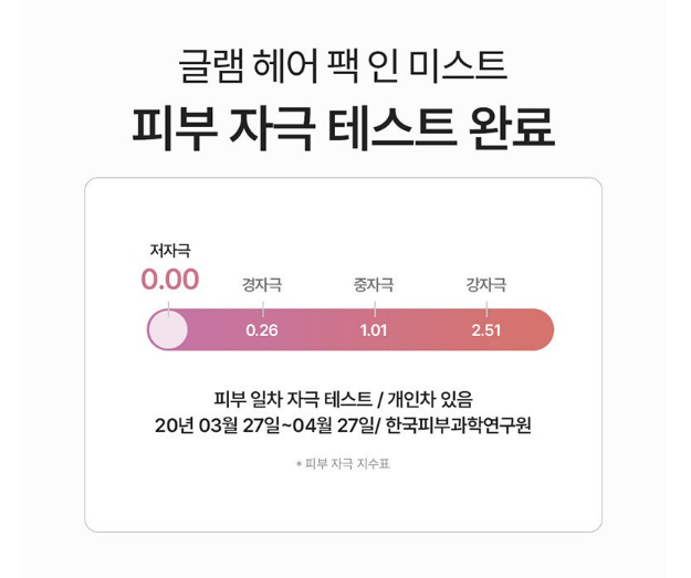 한국 피부 과학 연구원으로부터 피부 자극 테스트를 완료한 제품으로 안심하고 사용하셔도 돼요.