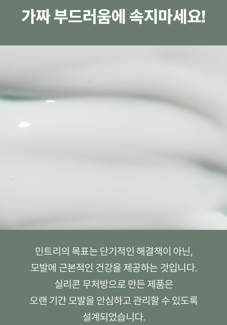 민트리의 목표는 단기적인 해결책인 아닌 모발에 근본적인 건강을 제공하는 것인데요. 민트리 펌 에센스는 실리콘 무처방 제품으로 오랜 기간 모발을 안심하고 관리할 수 있도록 설계하였어요.