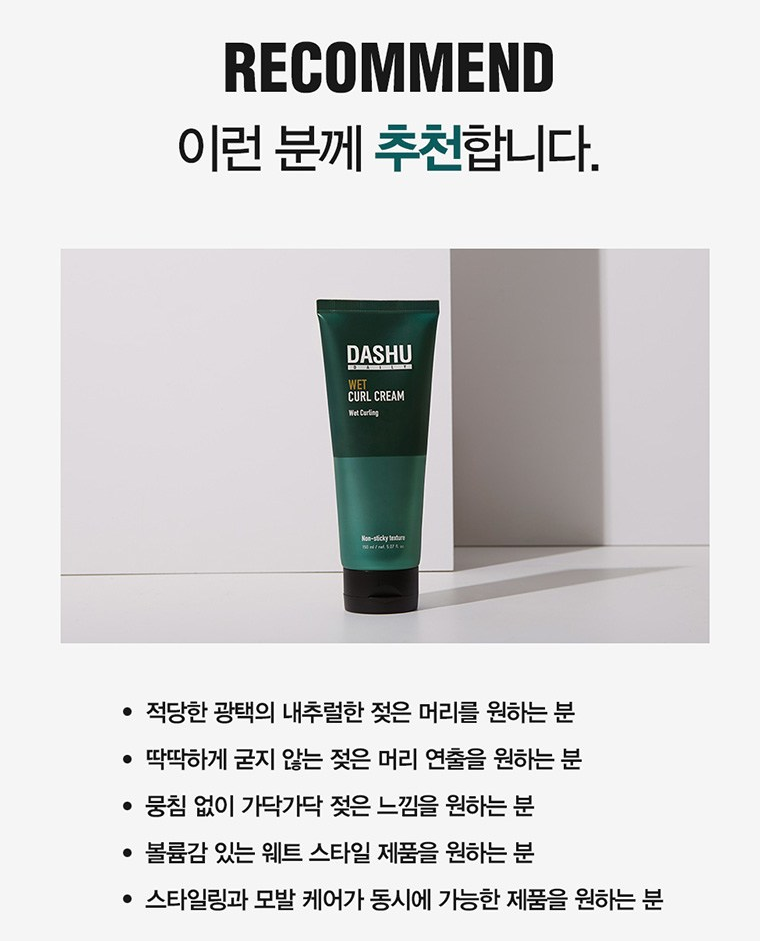 다슈 웨트 컬크림으로 누구나 쉽고 센스있게 헤어 스타일링 할 수 있어요!