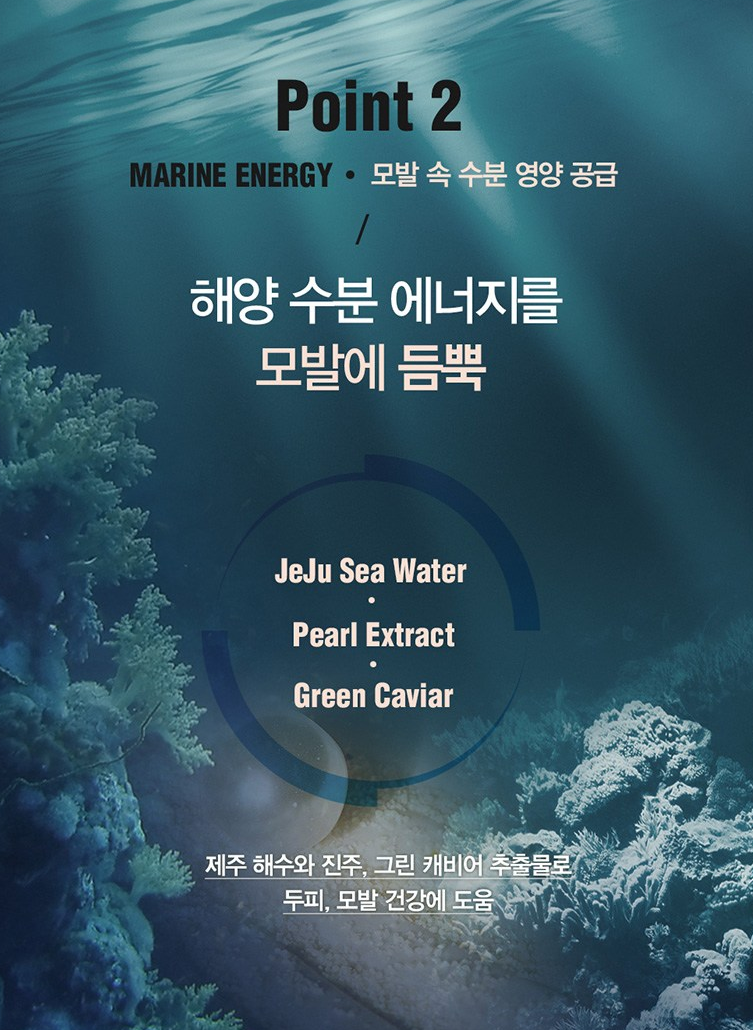 제주 해수와 진주, 그린 캐비어 추출물로 두피, 모발 건강에 도움을 줘요.