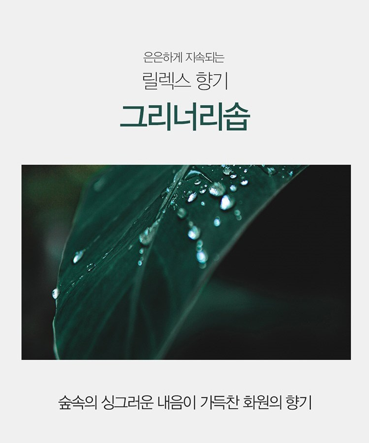 향이 시원한 풀향이 나고 향 지속력이 좋아서 지성 두피이신 분들은 정수리 냄새 또한 완화해줘서 좋아요.