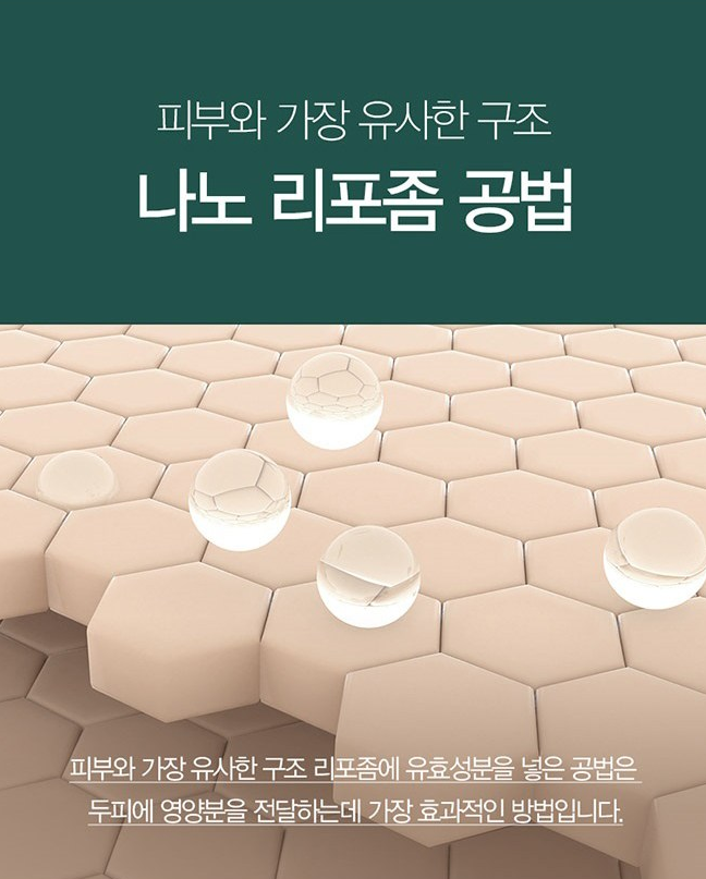 나노 리포좀 공법은 피부와 가장 유사한 구조 리포좀에 유효 성분을 넣은 공법으로 두피에 영양분을 전달하는데 가장 효과적인 방법이랍니다.
