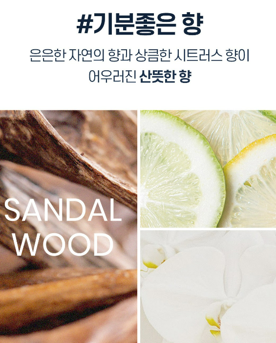 은은한 자연의 향과 상큼한 시트러스 향이 어우러진 산뜻한 향을 느끼실 수 있어요.