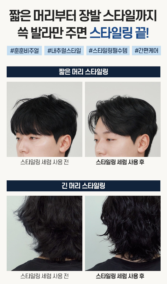짤은 머리부터 긴 머리까지 쓱 간단하게 발라만 주면 내추럴하게 스타일링을 할 수 있어요.