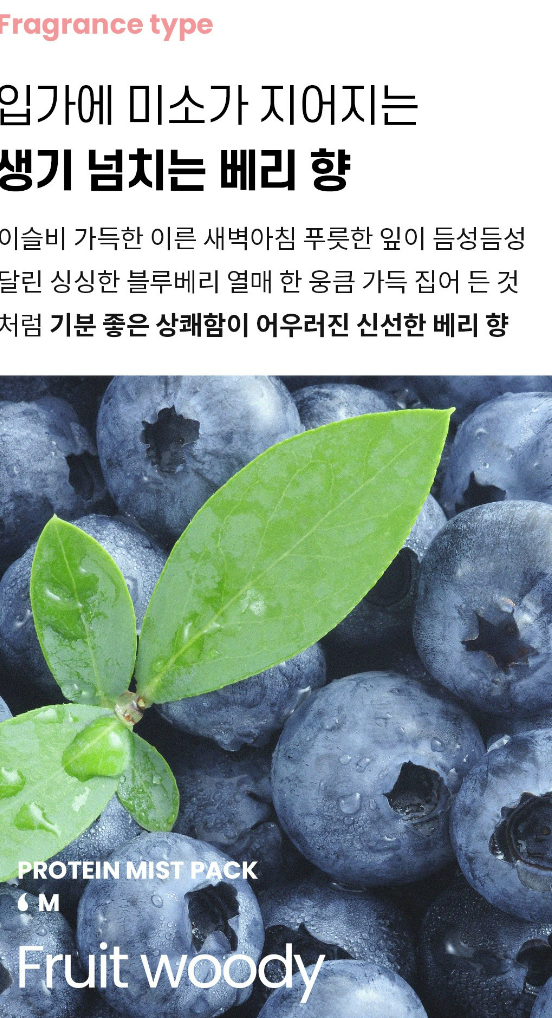 이슬비 가득한 이른 새벽 아침 푸릇한 잎이 듬성듬성 달린 싱싱한 블루베리 열매 한 움큼 가득 집어 든 것처럼 기분 좋은 상쾌함이 어우러진 신선한 베리 향을 느낄 수 있어요.