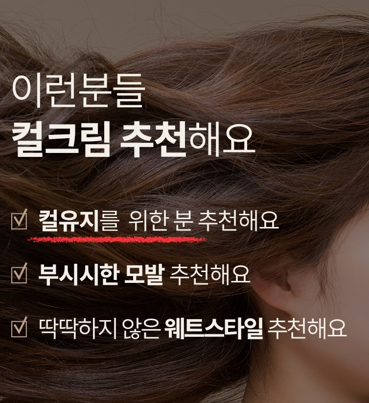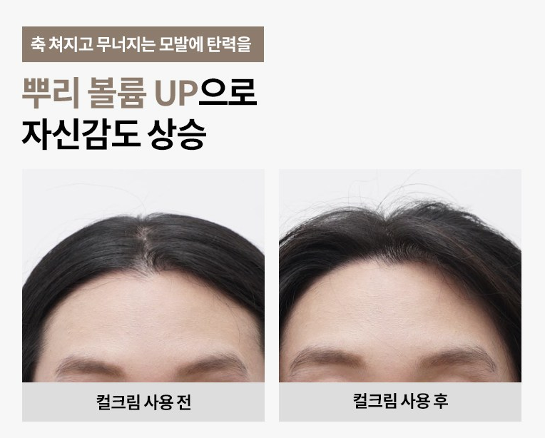 컬크림 사용을 통해 축 쳐지고 무너지는 모발에 뿌리 볼륨과 탄력을 줄 수 있어요.