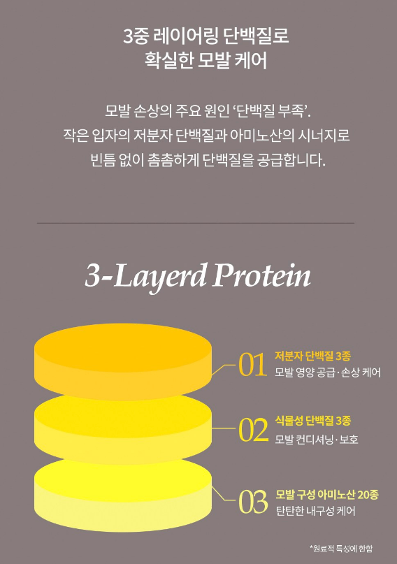 3중 레이어링 단백질로 확실한 모발 케어