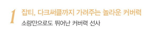 소량만으로도 잡티, 다크써클까지 가려주는 놀라운 커버력이 특징이에요!
