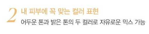 어두운 톤과 밝은 톤의 두 컬러로 자유롭게 믹스하여 내 피부에 꼭 맞는 컬러를 표현할 수 있어요.