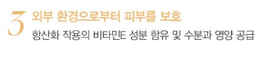 항산화 작용의 비타민E 성분 함유 및 수분과 영양 공급으로 외부 환경으로부터 피부를 보호해주는 역할도 하고 있어요.