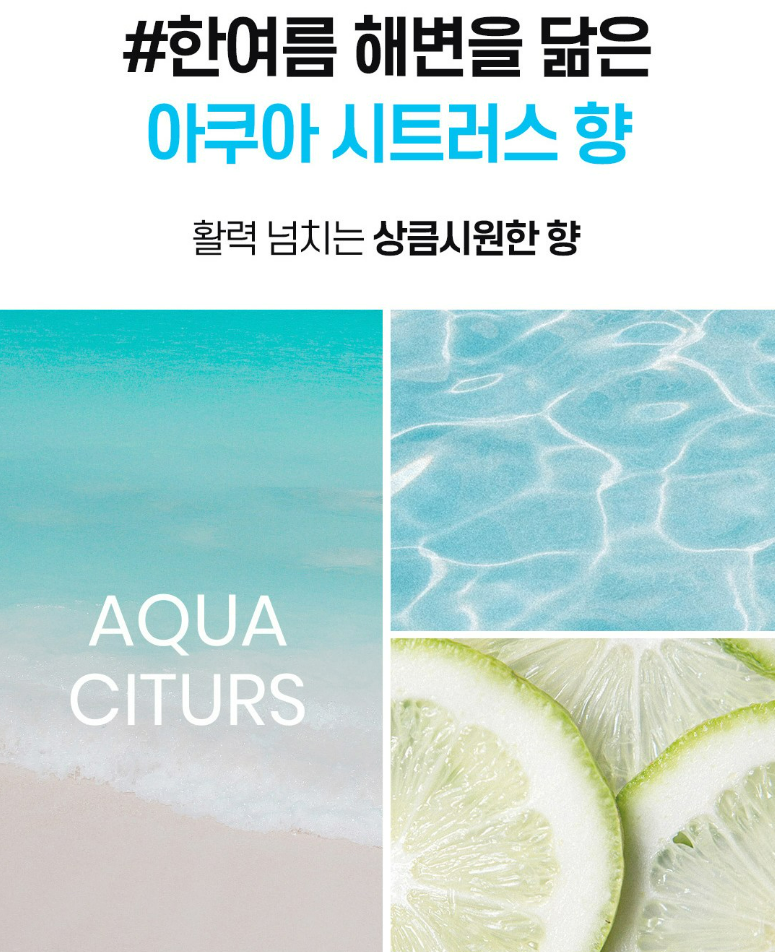 활력 넘치는 상큼시원한 아쿠아 시트러스 향이 부담스럽지 않고 은은해서 좋아요.