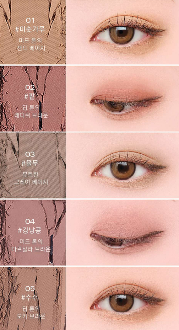 삐아 싱글아이섀도우는 매일 바르고 싶고, 질리지 않는 데일리 음영 컬러들로 이루어져 있어요.