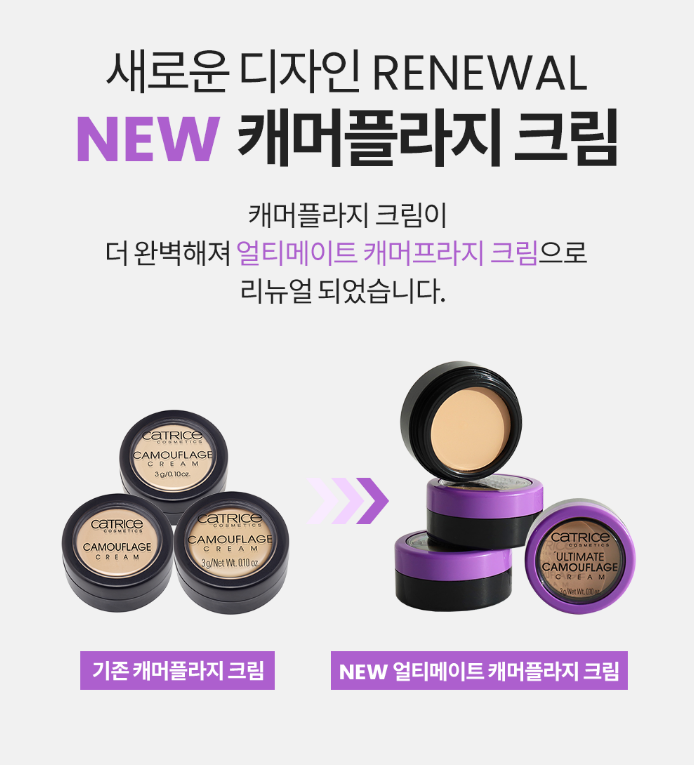 새로운 디자인으로 리뉴얼 되었는데요. 기존 캐머플라지 크림이 더 완벽해져 얼티메이트 캐머프라지 크림으로 리뉴얼 되었답니다!