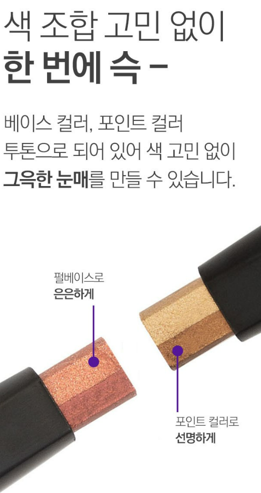 베이스 컬러, 포인트 컬러 투톤으로 되어 있어 색 고민 없이 그윽한 눈매를 만들 수 있어요.