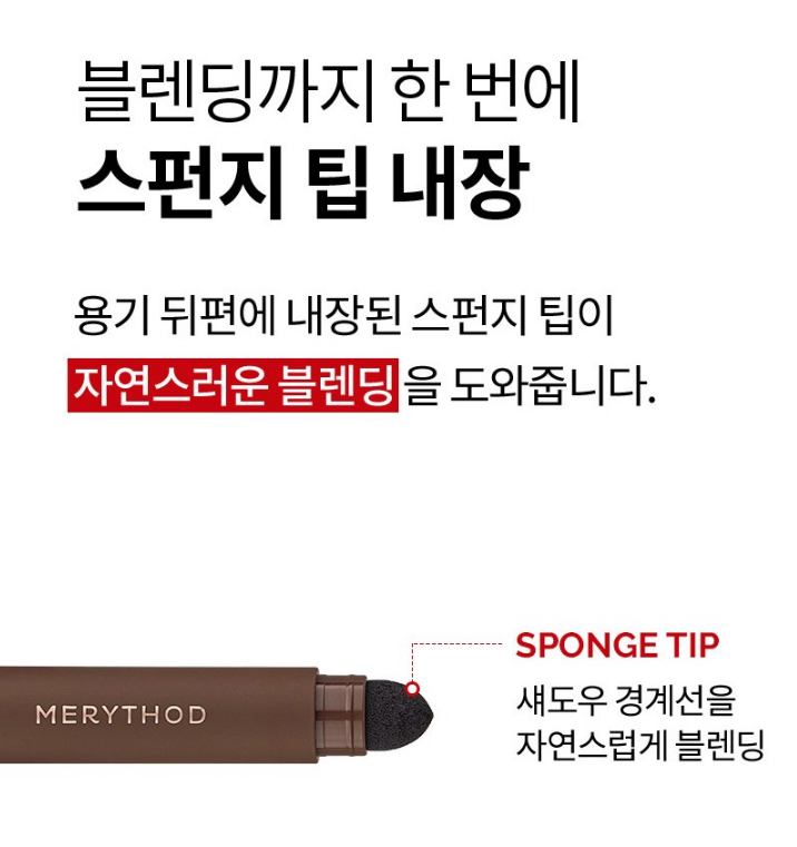 용기 뒤편에 내장된 스펀지 팁이 섀도우 경계선을 자연스럽게 블렌딩 해줘요.