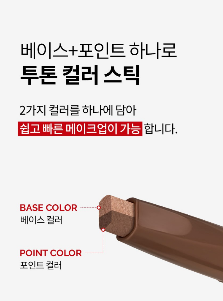 2가지 컬러를 하나에 담아 베이스와 포인트까지 쉽고 빠른 메이크업이 가능해요.