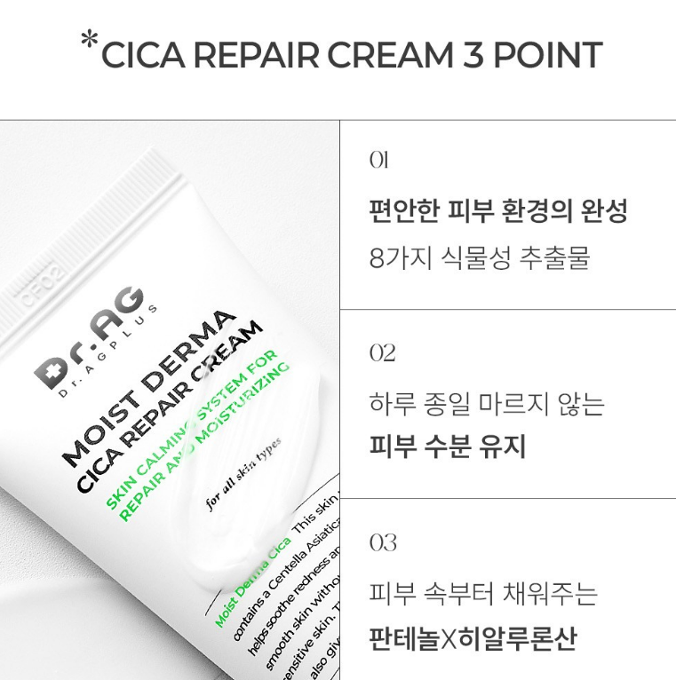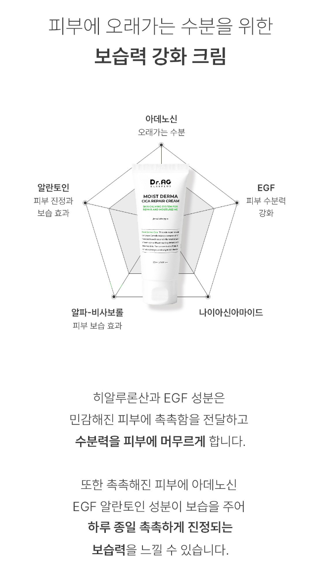 닥터에이지 수분크림은 8가지 식물성 추출물, 피부 수분 유지, 판테놀과 히알루론산 함유가 가장 큰 특징 3가지예요.