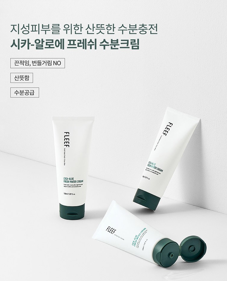 플리프 시카 알로에 수분크림은 지성피부 맞춤, 수분 충전, 끈적임 없는 사용감, 유분감 없는 산뜻함이 가장 큰 특징이에요.