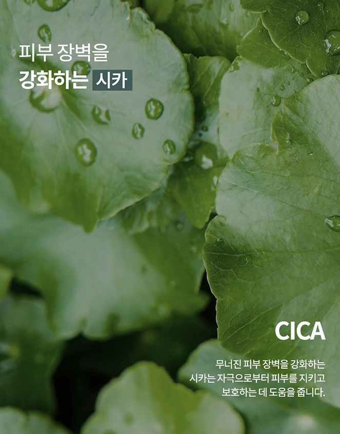 피부를 진정하고 수분을 공급하는 알로에 77%와 피부 장벽을 강화하는 시카가 함유되어 있어요.