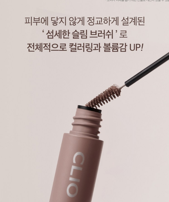 클리오 브로우 카라는 부드러운 눈썹을 연출하는 애쉬 컬러 라인업, 얇은 슬림 브러쉬, 필름 포머 함유를 통한 깔끔한 픽싱이 가장 큰 특징이에요.