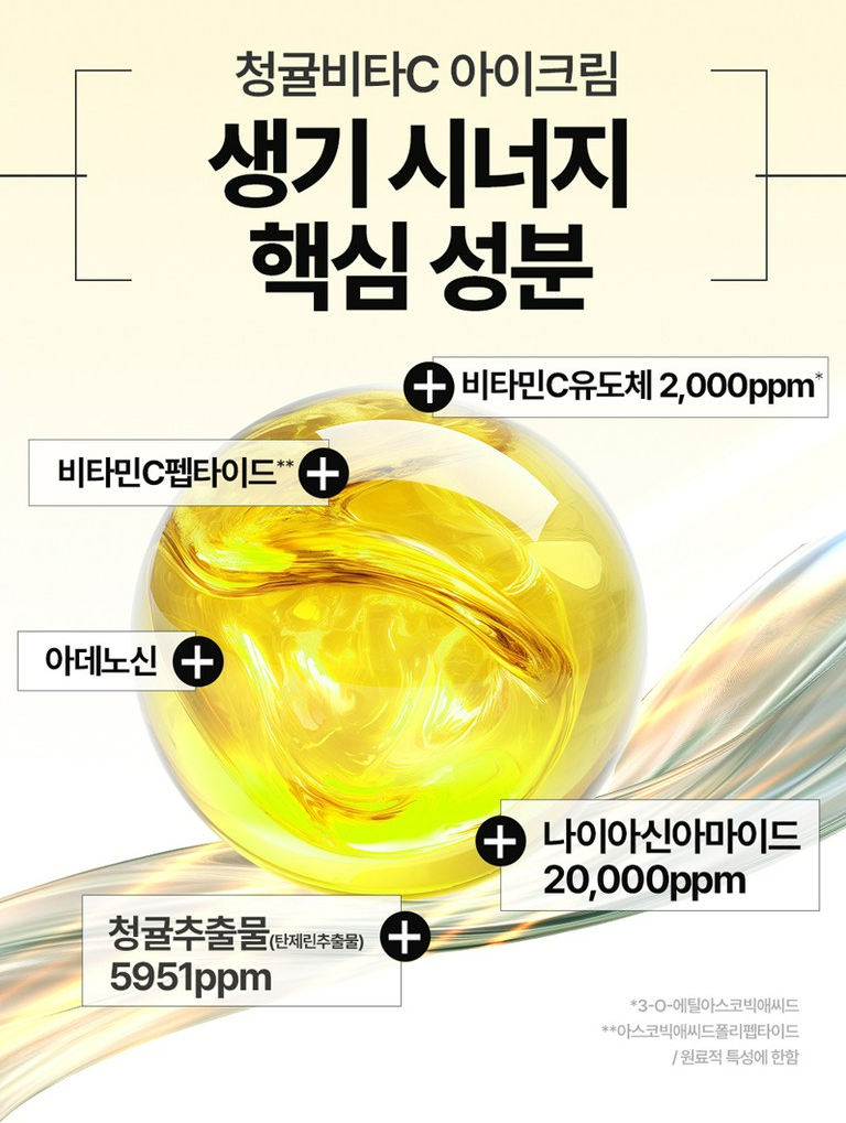 비타민C펩타이드, 비타민C유도체, 아데노신, 청귤추출물, 나이아신아마이드가 눈가의 생기를 챙겨줘요.