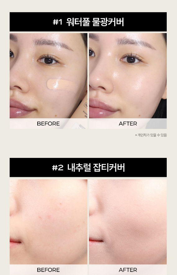 별다른 스킬 없이 손으로 발라도 손쉽게 밀착 커버핏을 표현할 수 있어요. 물광 커버부터 모공 커버, 잡티커버, 홍조력 커버까지 가능해요.