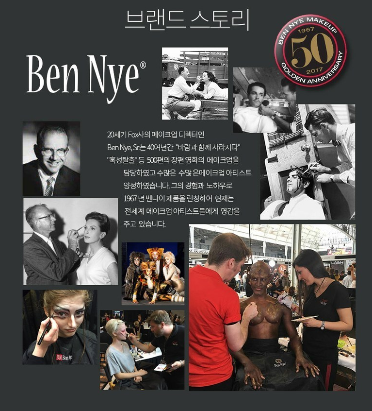 20세기 Fox사의 메이크업 디렉터인 Ben Nye, Sr.는 40여년간 '바람과 함께 사라지다', '혹성탈출' 등과 같은 500편의 장편 영화 메이크업을 담당했고 수많은 메이크업 아티스트를 양성했는데요. 그의 경험과 노하우로 1967년 런칭한 브랜드가 바로 벤나이랍니다.