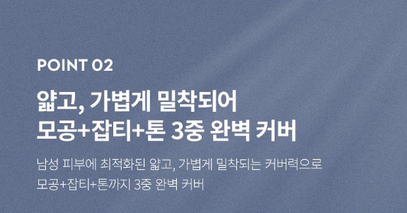 얇고, 가볍게 밀착되어 모공 + 잡티 + 톤 3중 완벽 커버가 가능해요.