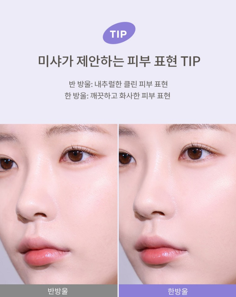 반방울은 내추럴하고 클린한 피부 표현이 가능해요. 한방울은 깨끗하고 조금 더 화사한 피부 표현을 할 수 있어요.