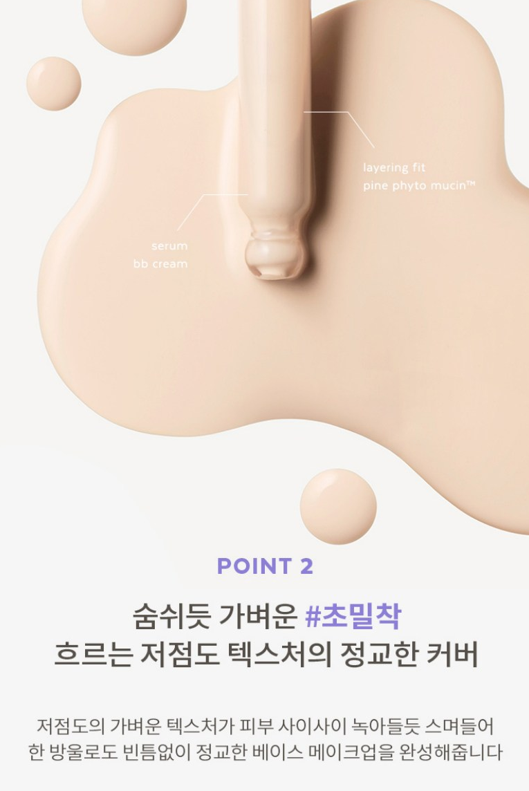 아무래도 촉촉한 세럼 제형의 비비크림이다 보니 다른 비비크림이나 파운데이션보다는 커버력이 약하다고 느끼실 수 있어요.