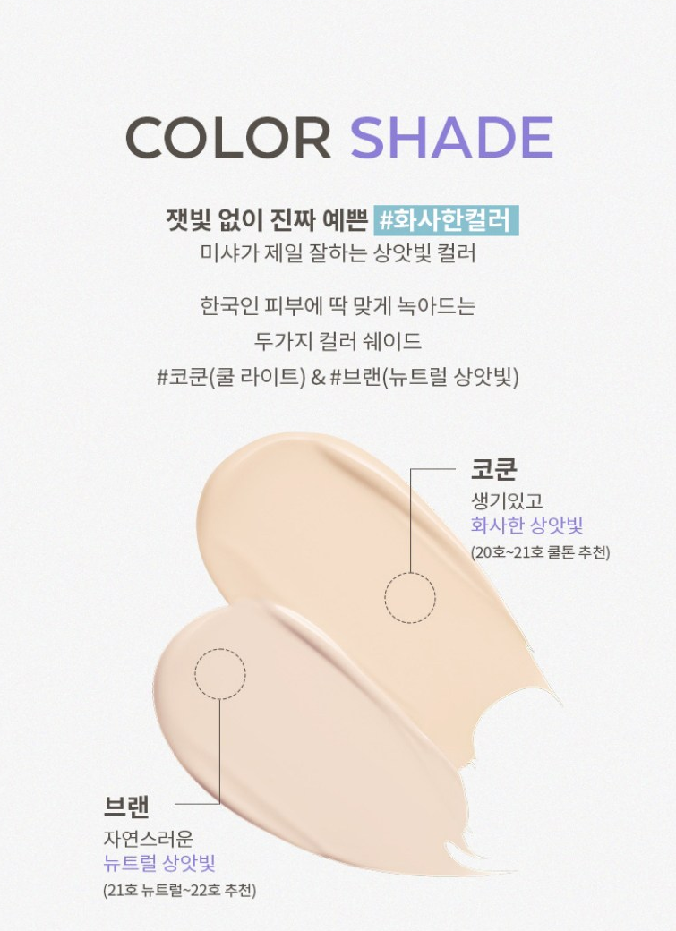 컬러는 생기있고 화사한 상앗빛의 코쿤과 자연스러운 뉴트럴 상앗빛 브랜 두가지로 구성되어 있어요.