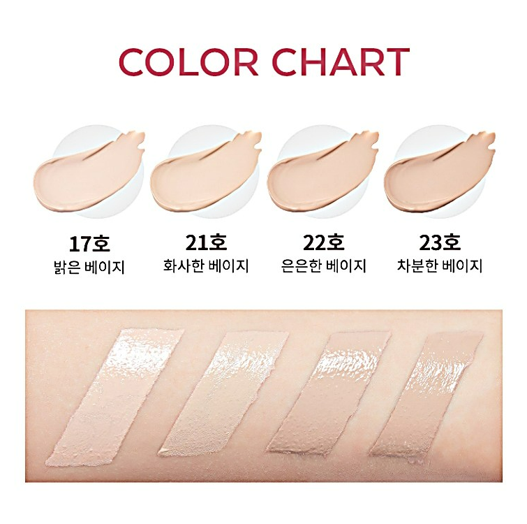 컬러는 17호부터 23호까지 내 피부톤에 맞춰 선택할 수 있어요.